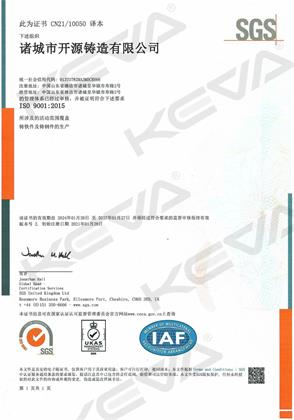 总公司通过了SGS ISO9001:2015质量管理体系认证