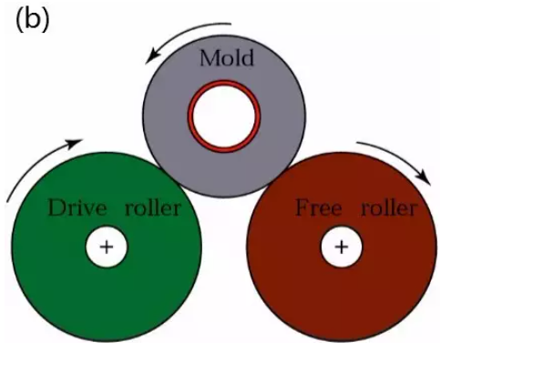 离心铸造:是将金属液浇入旋转的铸型中,在离心力作用下填充铸型而凝固成形的一种铸造方法。