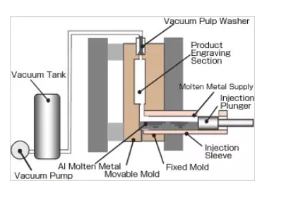 真空铸造:通过在压铸过程中抽除压铸模具型腔内的气体而消除或显著减少压铸件内的气孔和溶解气体,从而提高压铸件力学性能和表面质量的先进压铸工艺。