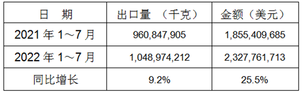 根据海关数据统计,2022年1-7月我国铸件出口总体保持增长,其中: