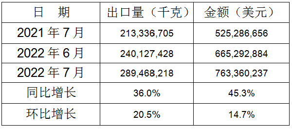 1-7月铸模及铸芯用粘合剂共计出口1.7万吨,同比增长9.8%。其中:7月份出口0.3万吨,同比增长36.0%,环比增长11.1%,见表11和表12。